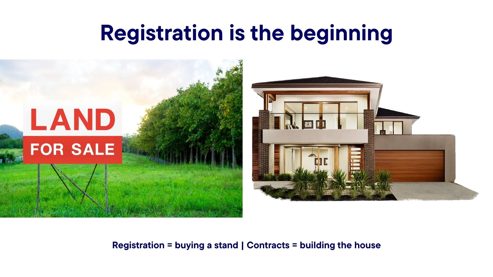 Think of it like this: registration is just like buying a stand. Now, buying a stand is exciting. It feels like an accomplishment. But let’s be honest. Buying the stand is not the end goal. The goal is building your dream house.